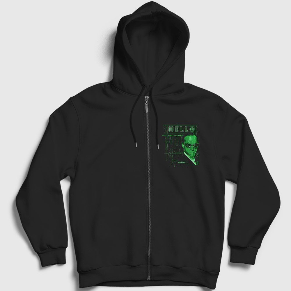 Agent Smith Hello Film The Matrix Fermuarlı Kapşonlu Sweatshirt