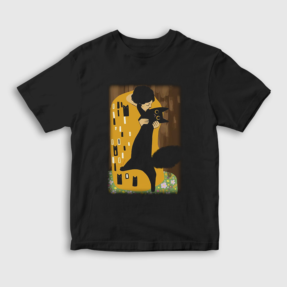 / Cat Kiss Kedi Kedili Hediye Gustav Klimt Çocuk Tişört