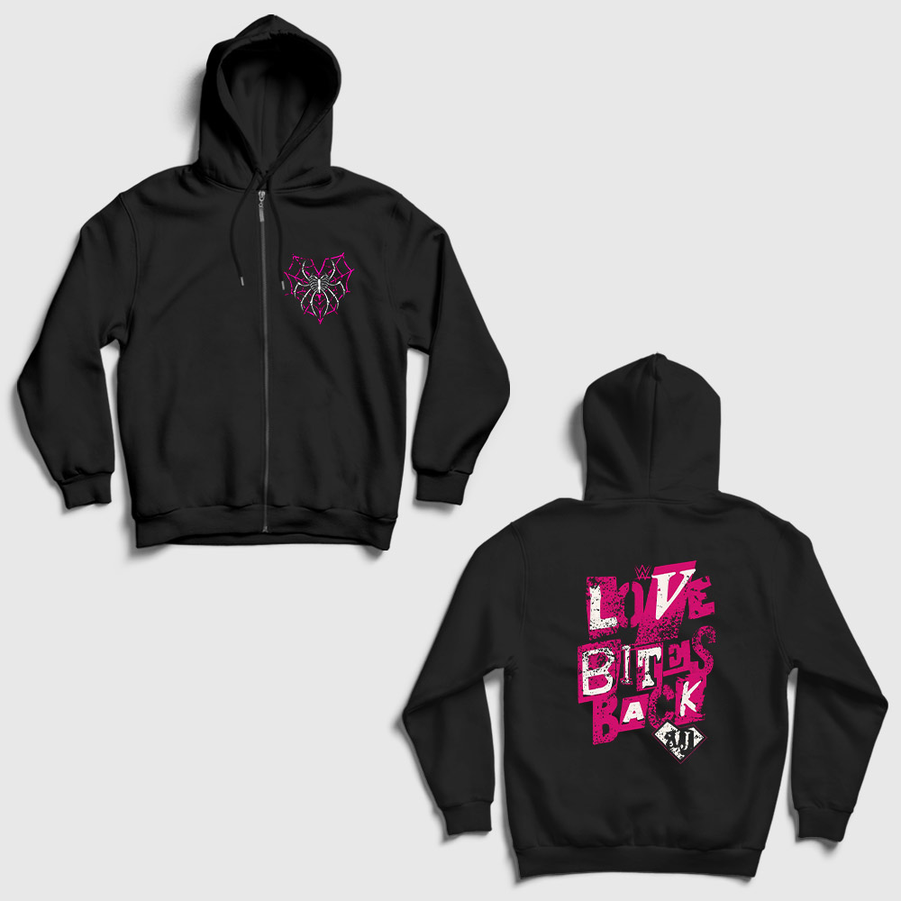 Love Bites Back Wwe Aj Lee Sırt Baskılı Fermuarlı Kapşonlu Sweatshirt