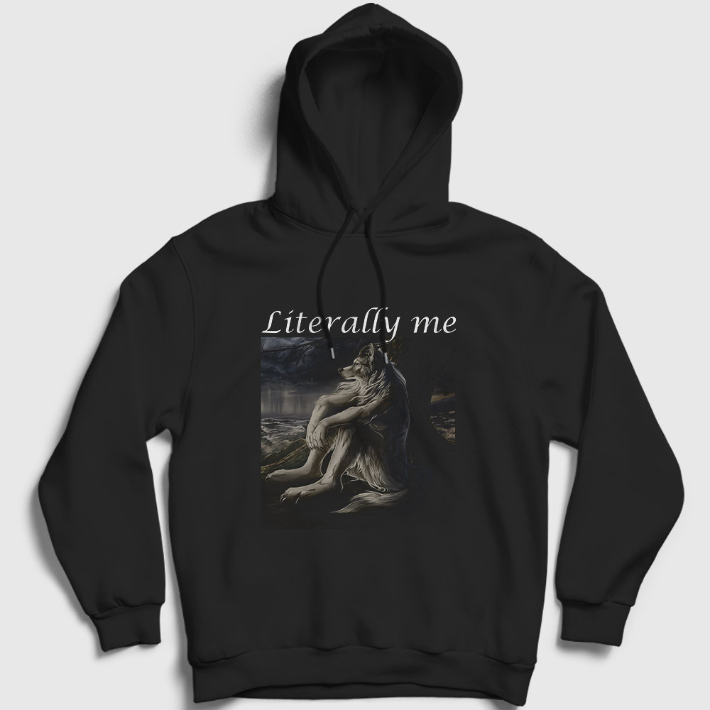 Oturan Kurt Sitting Wolf Literally Me Kapşonlu Sweatshirt