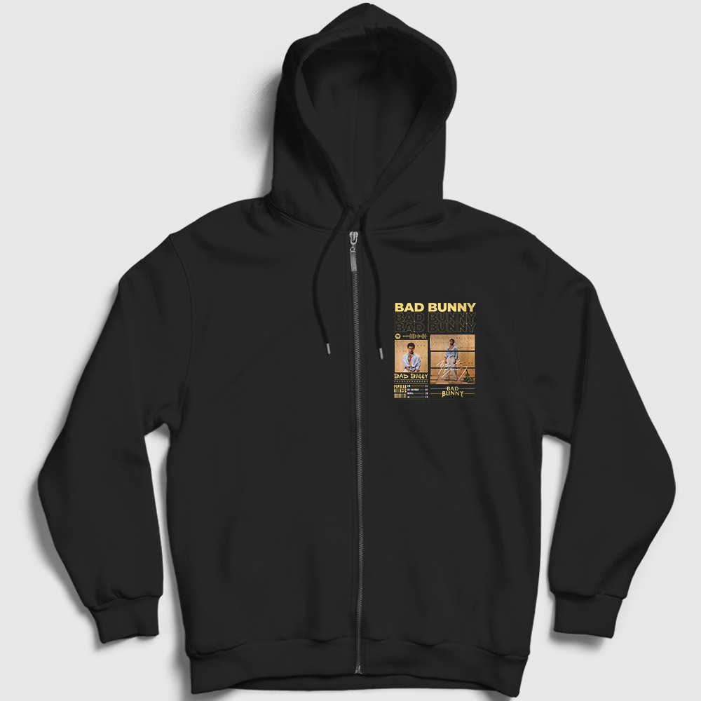 / Popular Bad Bunny Fermuarlı Kapşonlu Sweatshirt
